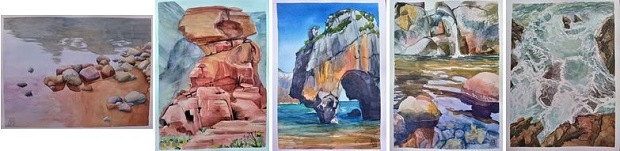 La resta són els exercicis més o menys en ordre cronològic: dibuix dels ritmes, aquarel·la sobre el dibuix dels ritmes, un monocrom sobre el mateix, una interpretació lliure dels ritmes i aquarel·la, un esboç d'una segona interpretació amb ceres i aquarel·la, la segona interpretació dels ritmes i el darrer amb ceres i aquarel·les.